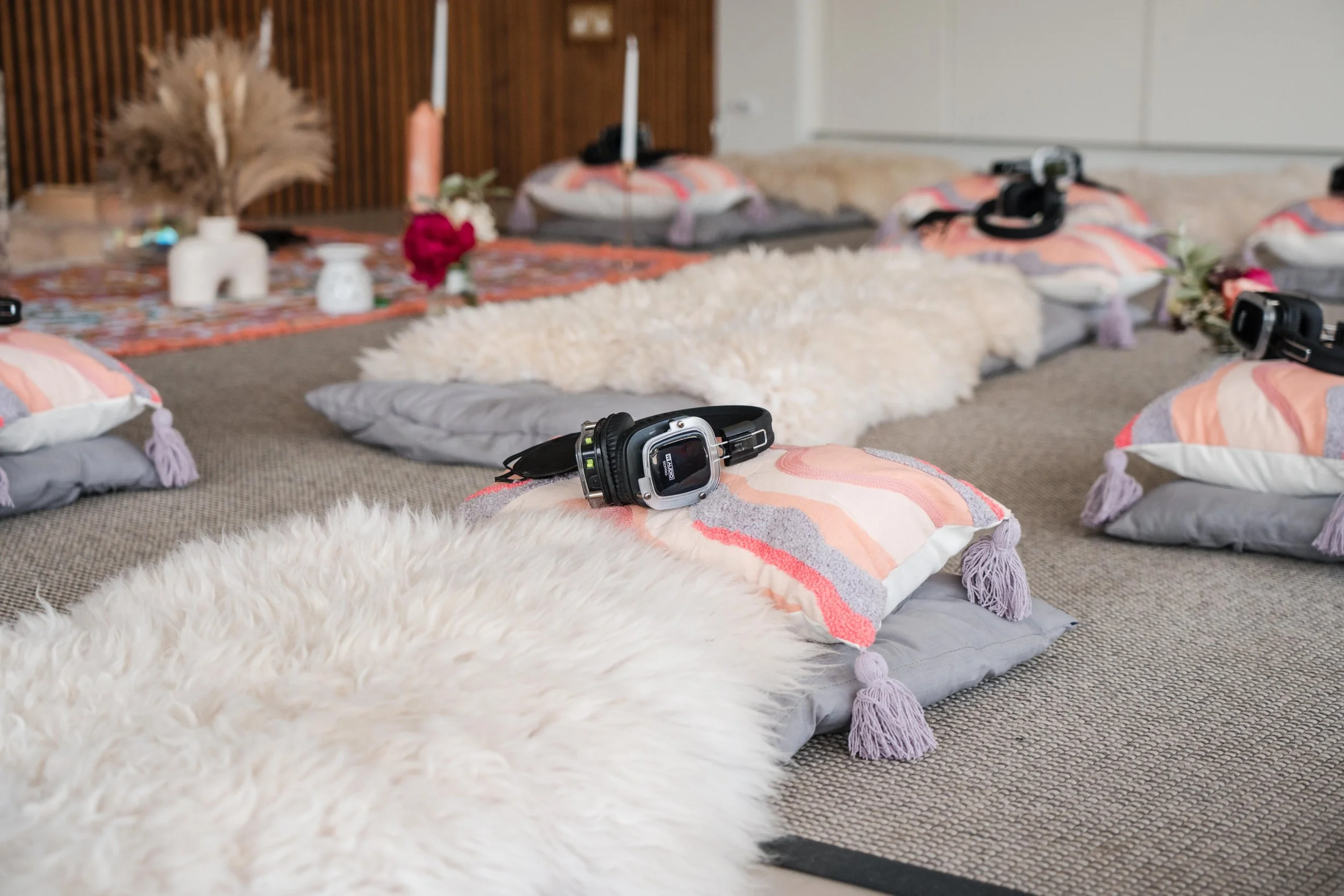 Our breathwork and movement sessions are unique and different from the rest, immersive and intimate by using silent disco headsets. Removing a major sense, the external sound, the world falls away and the only place left to go is within. You emerge feeling like you have been on a life changing journey to another world.